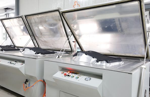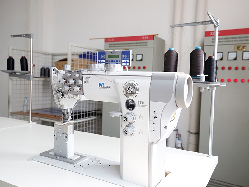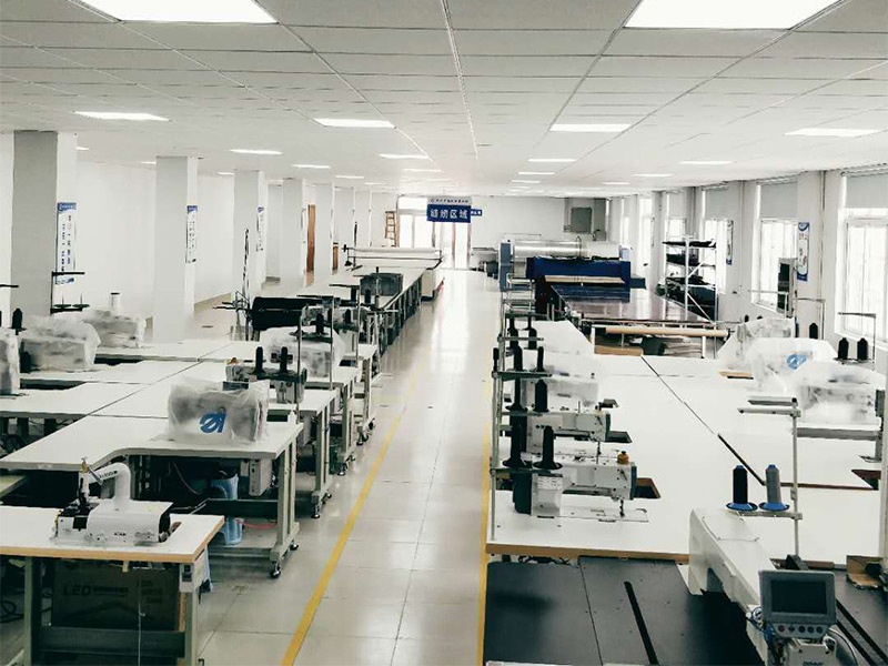 設備:懸掛鏈式烘烤道1條、隧道烘烤箱1臺、全自動裁皮機1臺、雙工位吸附機1臺、單工位吸附機2臺、 縫紉設備6臺、氣壓設備1臺。